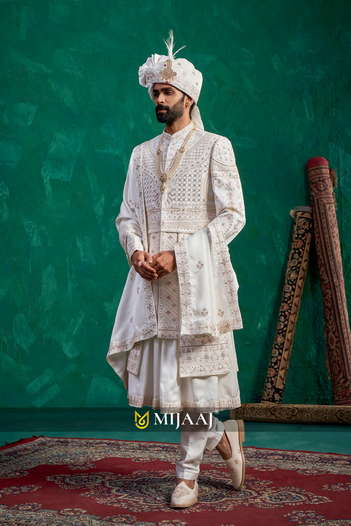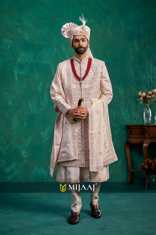 Men’s Pink Satin Silk Kurta Set with Zari & Sequin Embroidery
