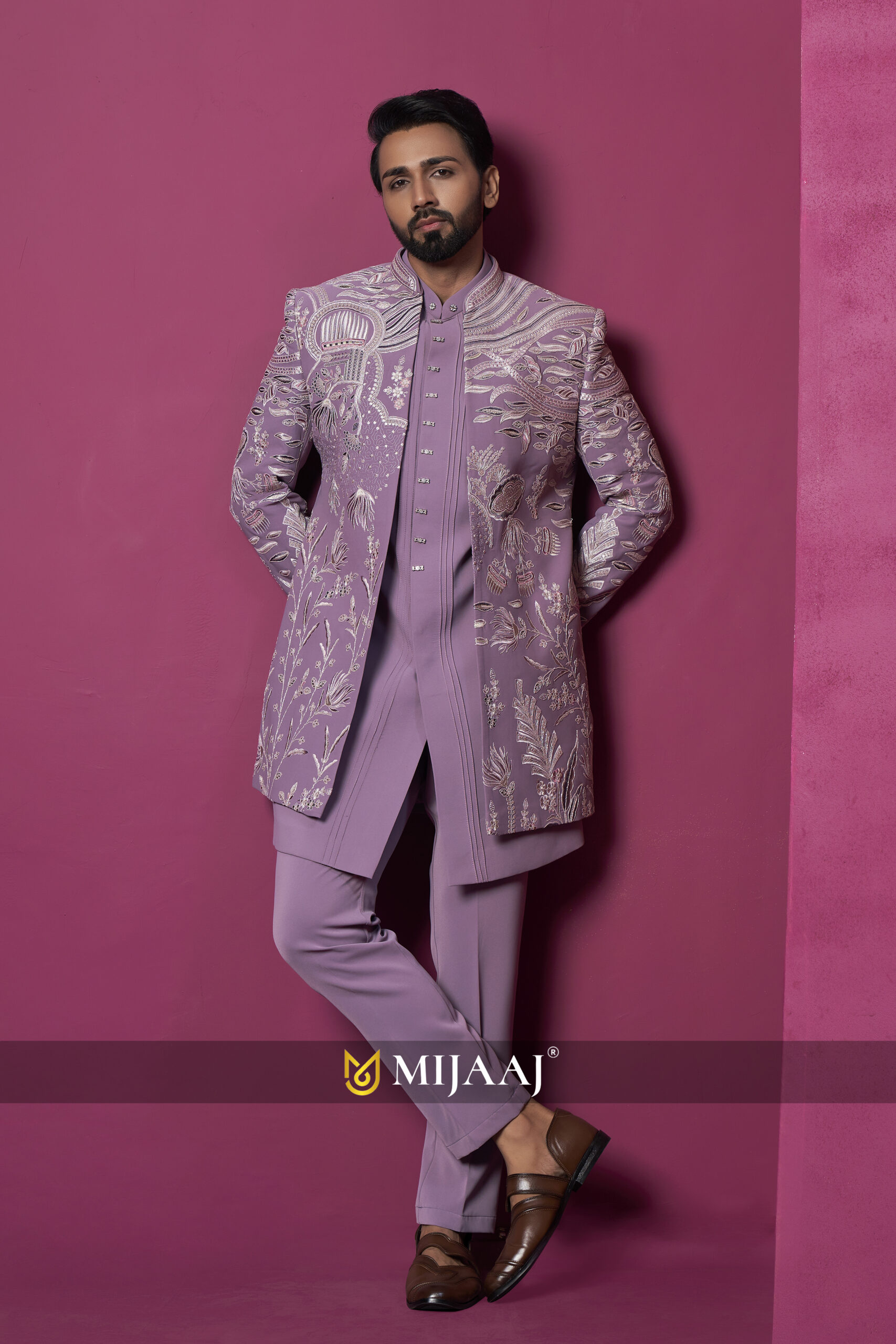 Lavender Majesty Hand-Embroidered Indo-Western