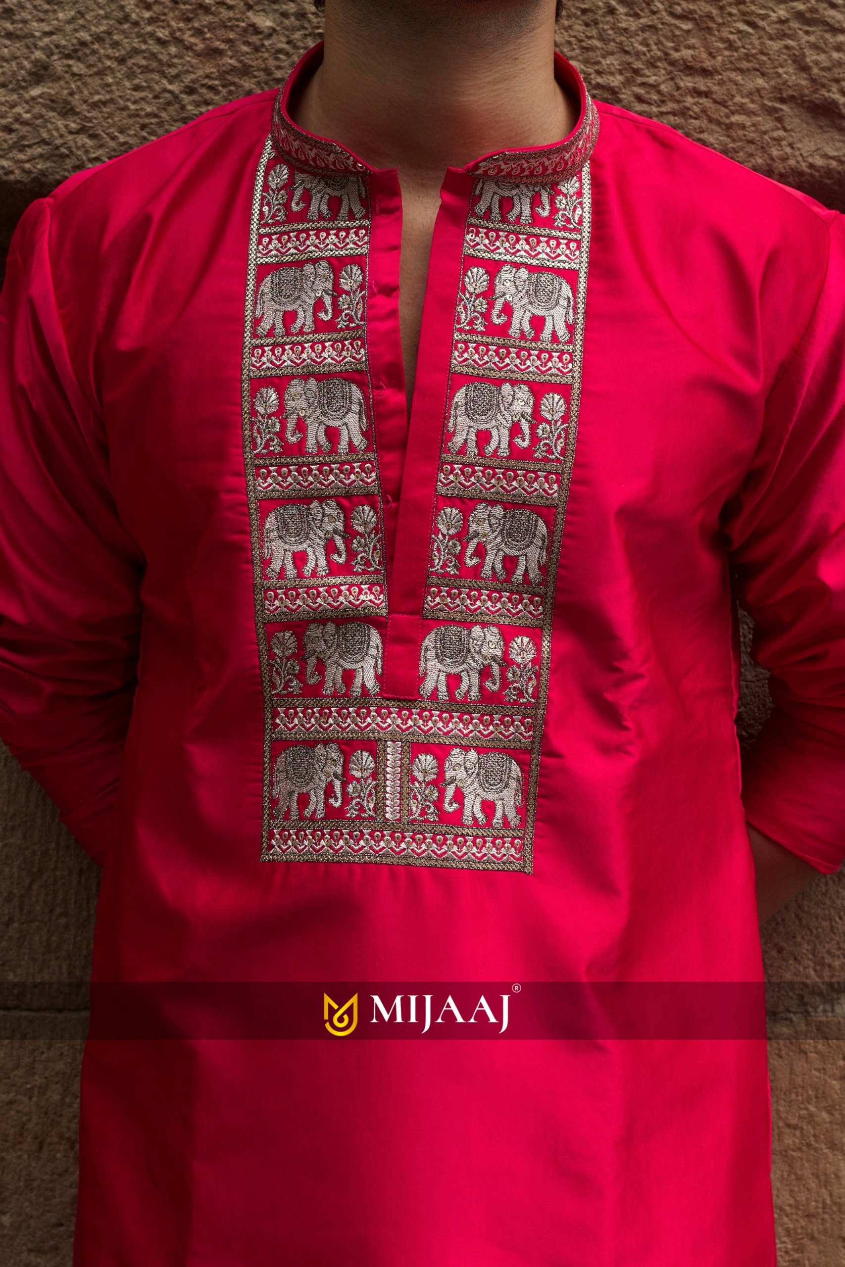 Men’s Pink Satin Silk Kurta Set with Zari & Sequin Embroidery