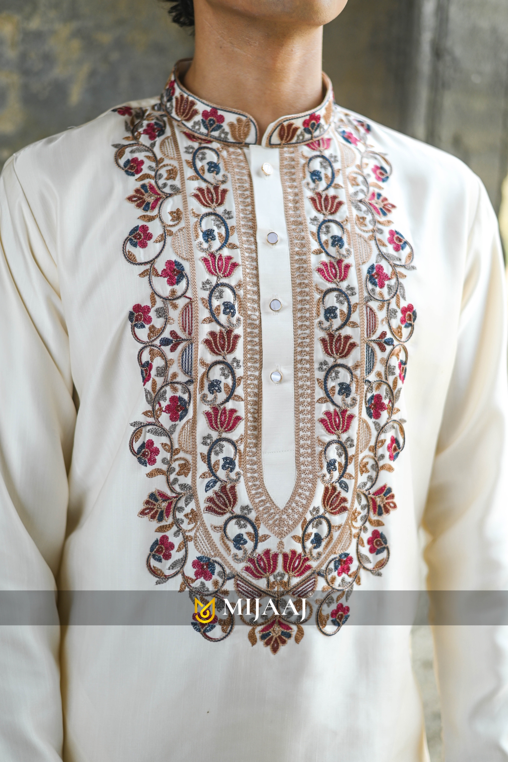 Off White Kenzo Kurta with Elegant Chain Stitch Embroidery