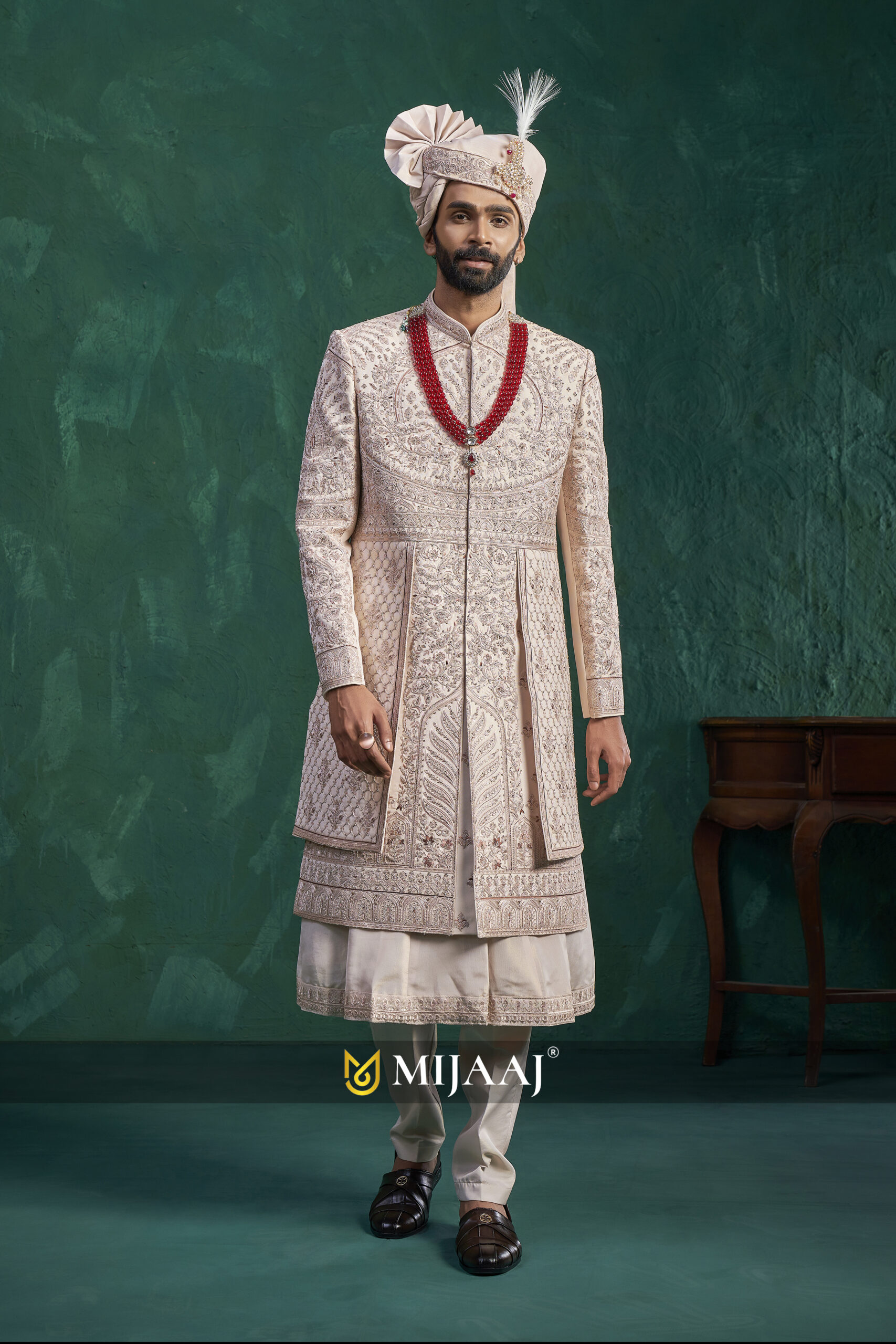 Champagne Regal Embellished Sherwani for Groom – Mijaaj